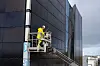 – Bygget ligger sentralt, midt i et handlesenter med mye bygningsmasse rundt. Det har gjort det krevende å tilføre materialene. Det var ikke så mange kraner som hadde den rekkevidden vi trengte. I sommer fikk vi inn en kjempestor mobilkran fra Østlandet. Med en påmontert jibb greide vi å få det til. Vi hadde også en noe spesiell tilkomst da ordinære stillaser var for tunge for takene rundt. Vi jobbet derfor med hengestillas som hang ned fra taket og benyttet lift der vi kom til.