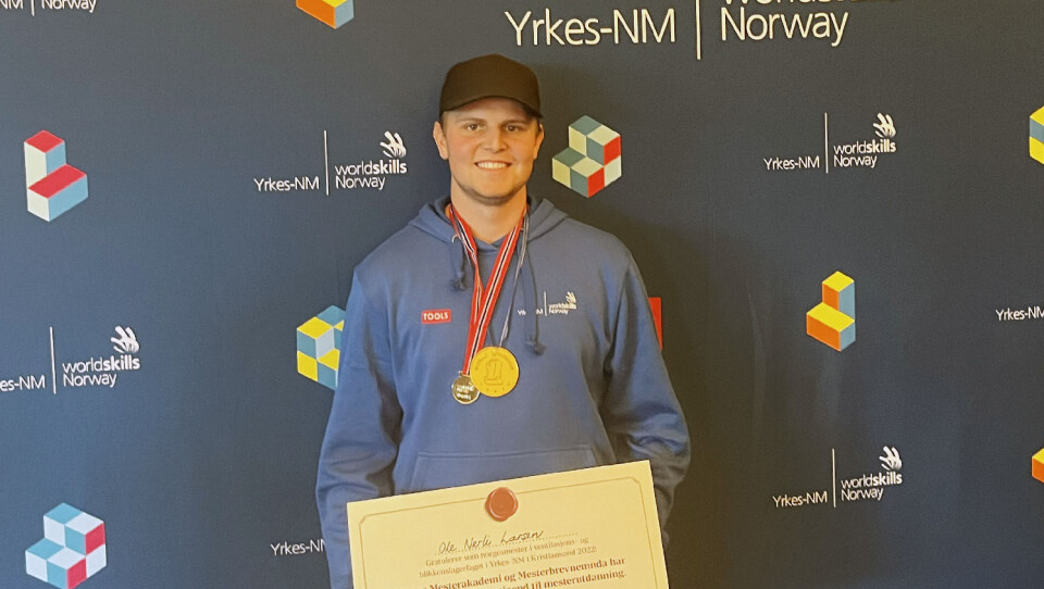 Ole Nerli Larsen, født i 2001, ble til slutt kåret som vinneren i NM i ventilasjons- og blikkenslagerfaget.. Han har allerede svennebrev og jobber i Gravdal Blikkenslagerverksted i Larvik.
