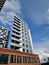 – Bygget som heter B4B har vært det mest krevende bygget vi har hatt på prosjektet. Bygget ligger nærmest jernbanen og fasaden er kledd med 4.500 kvadratmeter alukompositt fra Stacbond, i fire forskjellige gråtoner med forskjellig glans. Det skaper en helhet i fasaden, sier Henninger.
